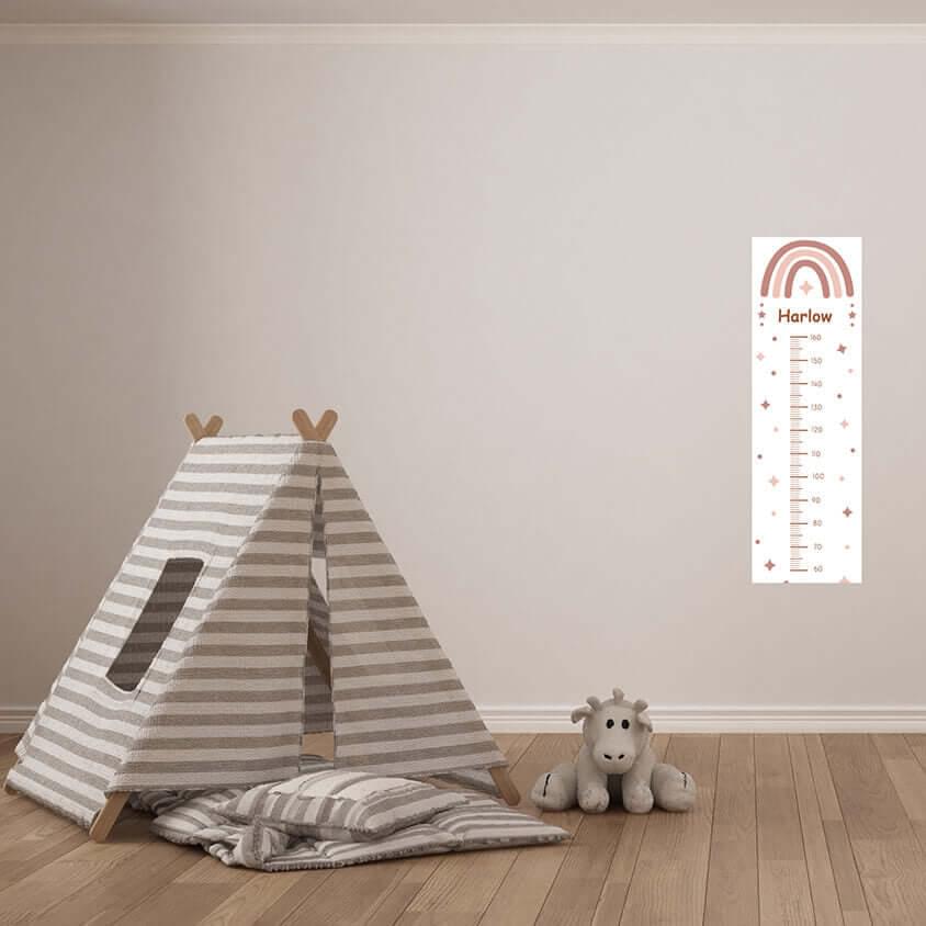 Our Height Chart Wall Stickers are available in either blush or blue, personalised with your child's name. Also available without a name if you'd like to record multiple children's heights.